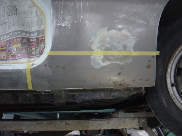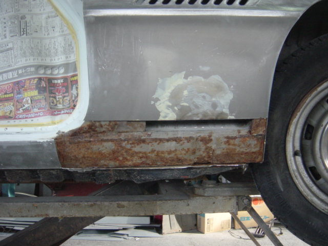 切開。ロッカーパネルとのつなぎ目の半田手前で、カットして