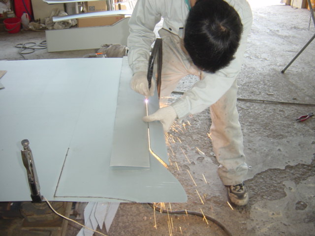 曲線があるので、シャーリングを使えず、早速手作業です。