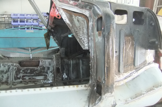 フロア張替の前作業としてダッシュロア部分の張替があります。