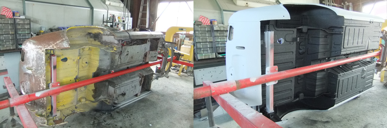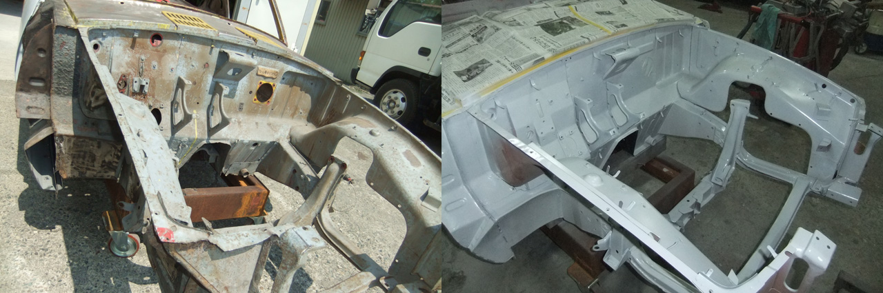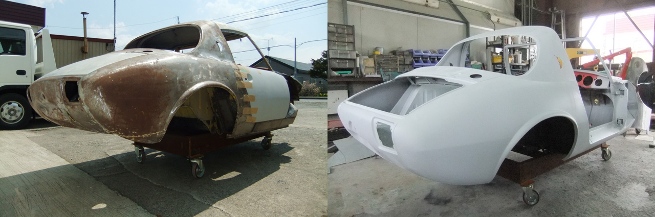 フェンダー、ボンネット、ドアにトランク、そしてルーフはほぼ仕上げの段階までになりました。