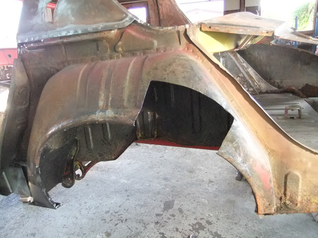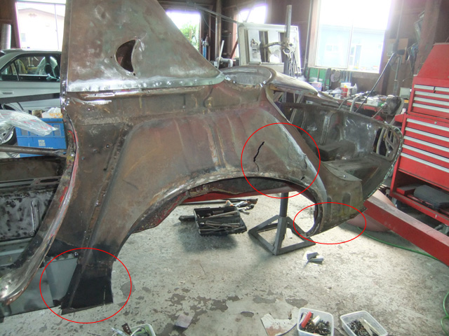 以前レストアしたローレルのリアフェンダーみたいに脱着して修理していたと思います。
