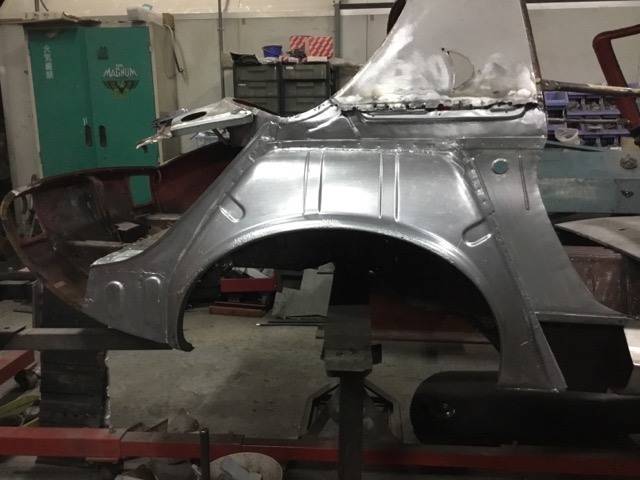 前後ロア部、ロックピラーを修理して復活したRrフェンダー。
