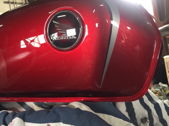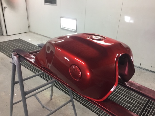 バイクのタンク塗装、面積こそは小さいのですが意外と大変なのです。