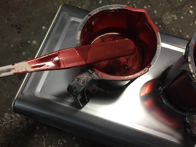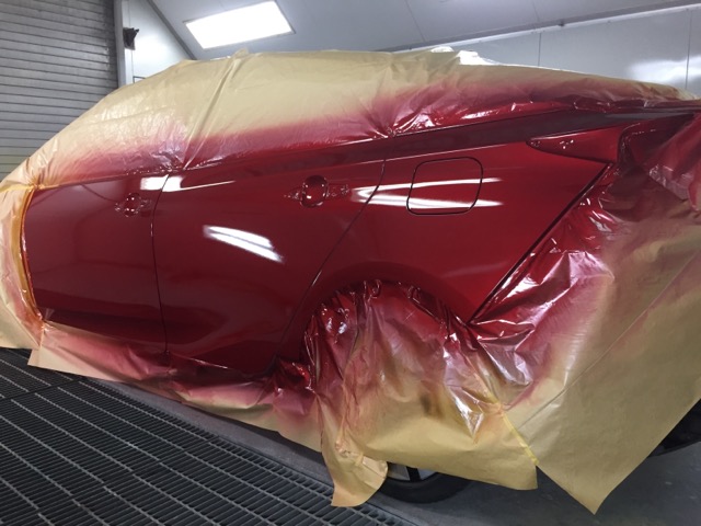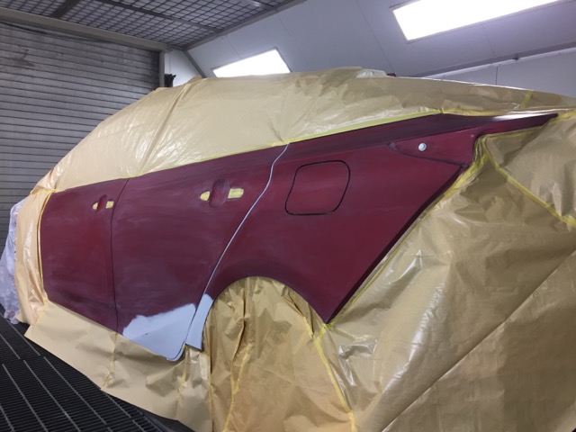 ベースコート、カラークリアー、クリアーと吹き付けて一度乾燥。