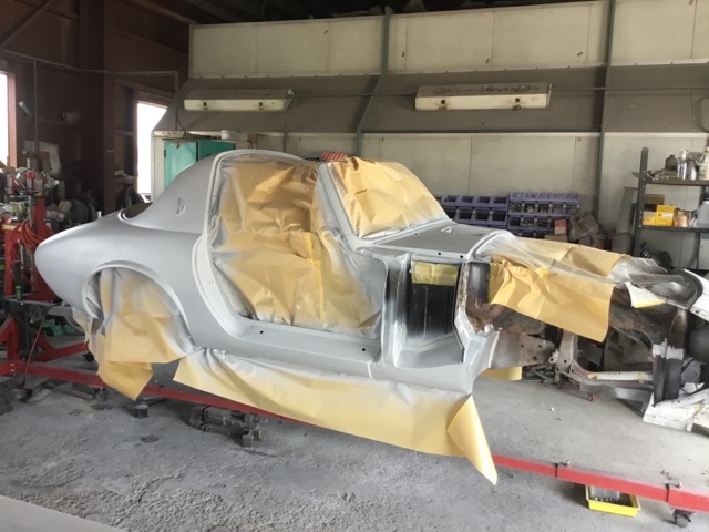 RrドアとRrフェンダーはベースコートもカラークリアーもしっかり塗ります。