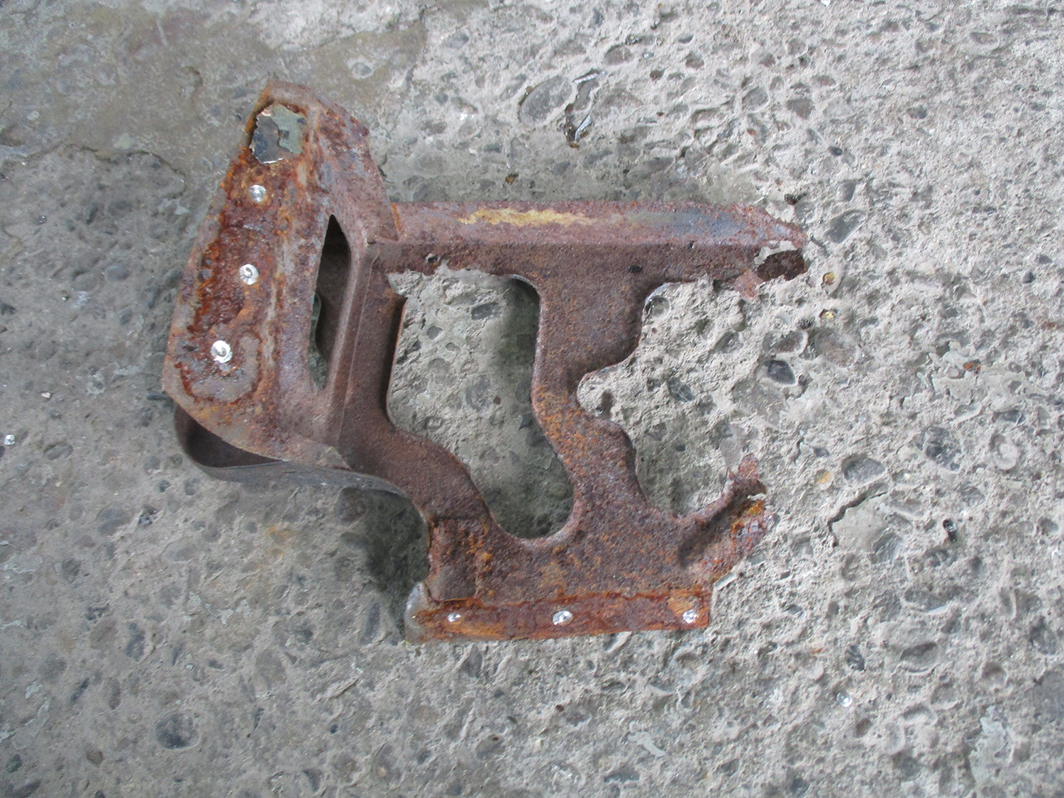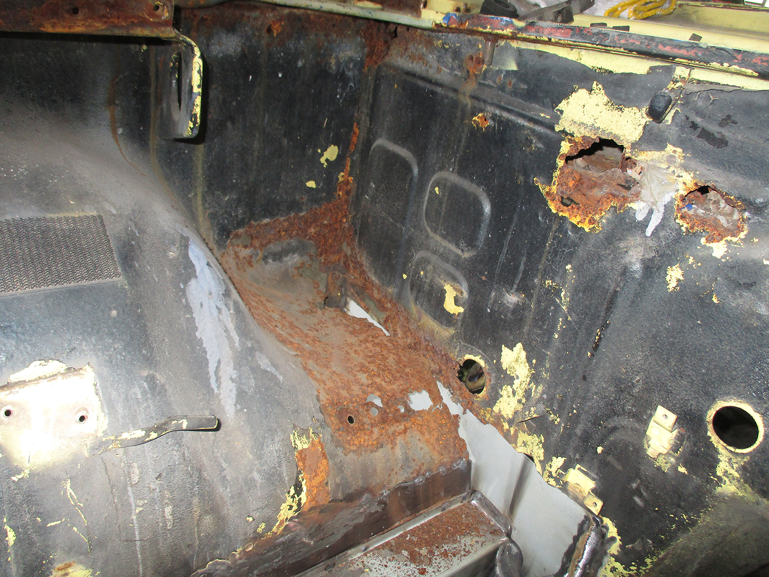 フロアパンにかけての広範囲にわたる錆。